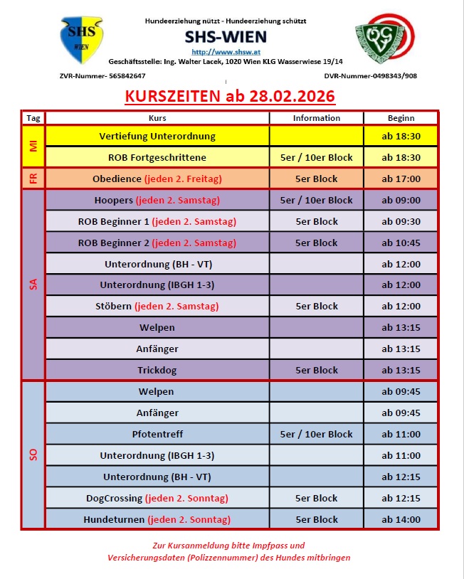 Ihr werdet gemeinsam einzelne Agility- und Hoopersgeräte kennenlernen und benutzen. Des Weiteren erwartet Euch eine Verbesserung des Sozialverhaltens zu Menschen und Hunden – auch in anderer Umgebung – durch Social Walks in der Lobau und auf der Donauinsel und dem Üben von Hundebegegnungen auch außerhalb des Hundeplatzes.